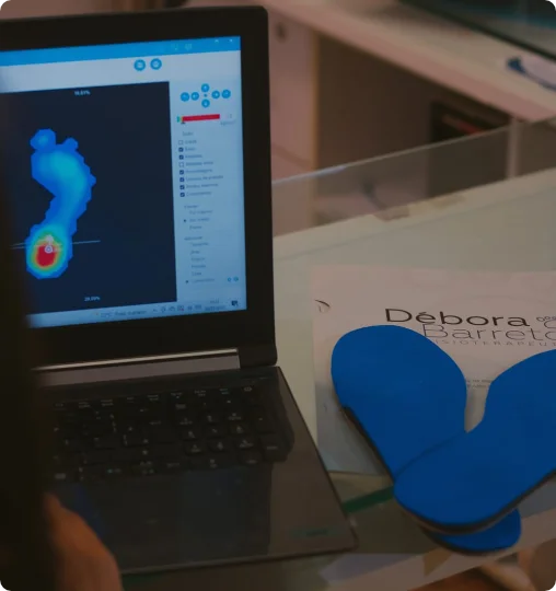 Aplico o exame da pisada com baropodometria e, quando necessário, desenvolvo palmilhas funcionais feitas sob medida, que ajudam a aliviar dores e melhorar a forma como a pessoa se movimenta no dia a dia.